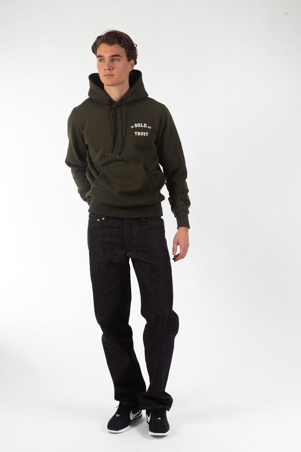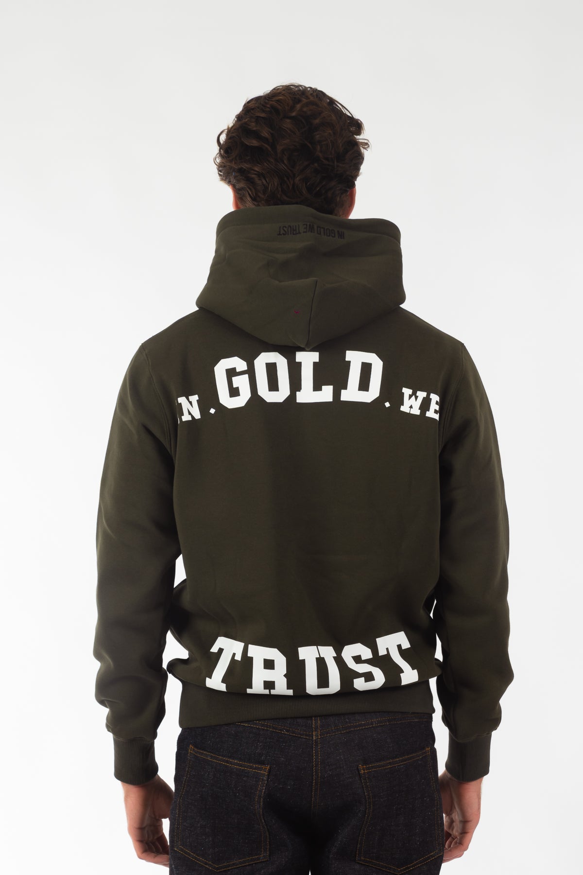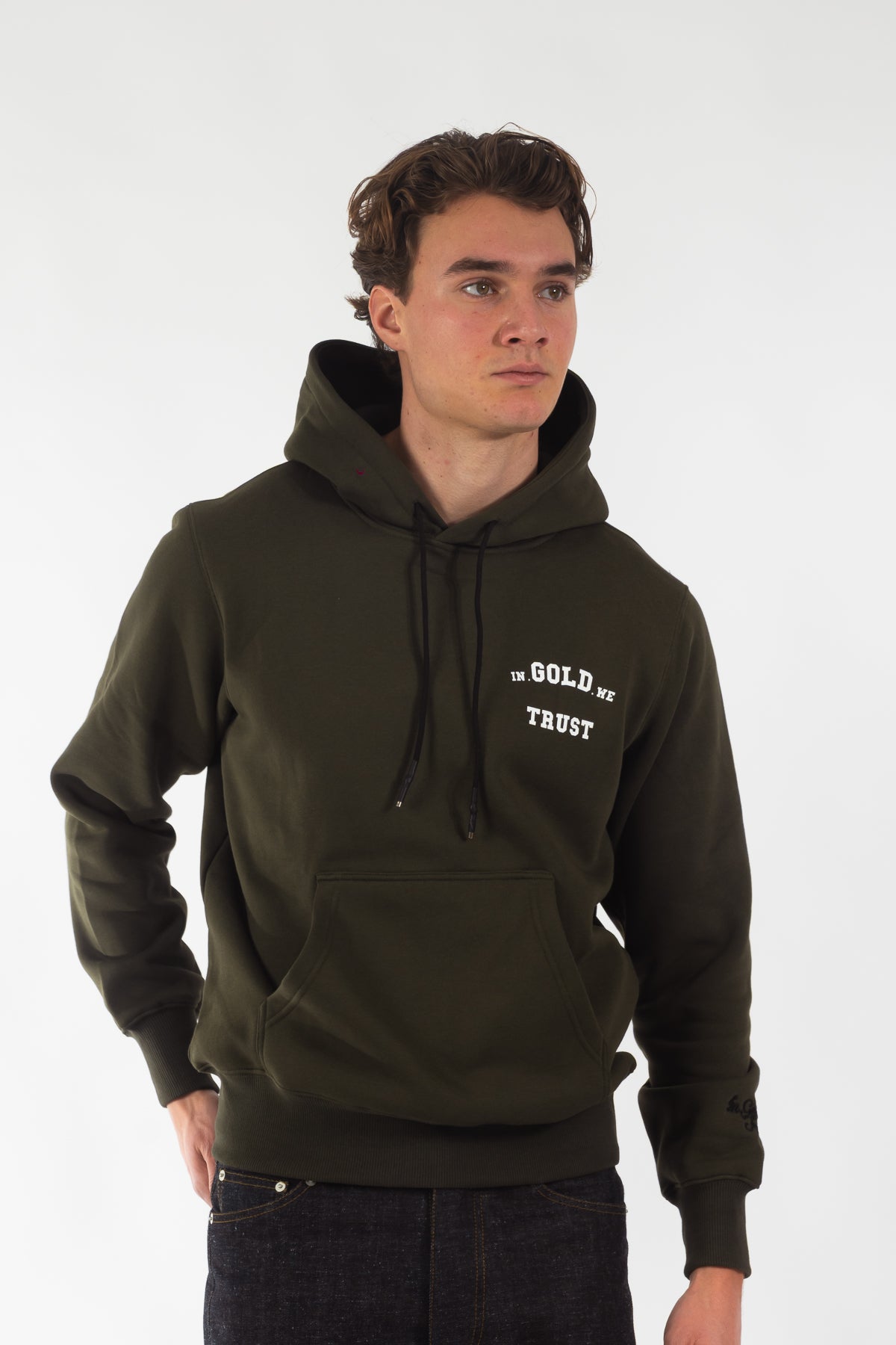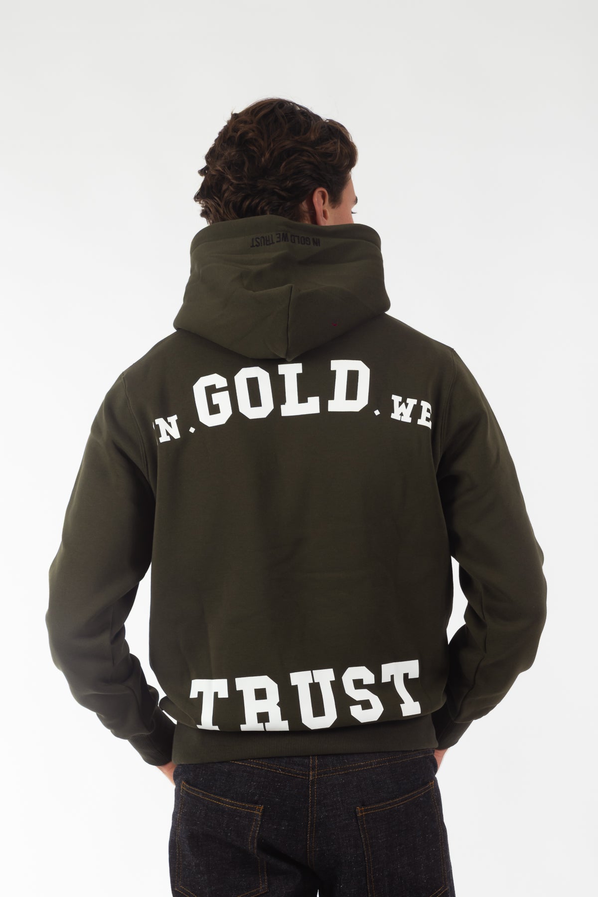Hoodie uit de nieuwe collectie, gebaseerd op ons herkenbare model en uitgevoerd in donkergroen. Gemaakt van een comfortabele polyester-katoen mix die zorgt voor een zachte feel en een vormvaste pasvorm. Afgewerkt met subtiele branding en verfijnde details voor een tijdloze uitstraling. Een veelzijdige essential dagelijks gebruik, uitgevoerd in de originele kwaliteit waar In Gold We Trust bekendstaat.