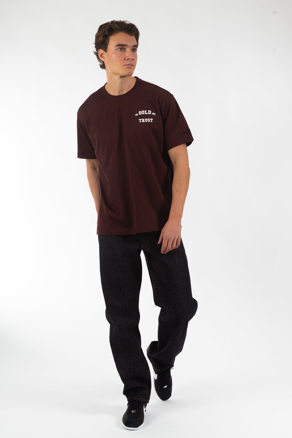 T-shirt uit de nieuwe collectie, gemaakt van 100% katoen in een comfortabele loose fit. Uitgevoerd in de kleur Bruin en voorzien van ons originele logo in hoogwaardige zeefdruk, met de herkenbare signature borduring op de mouwen. Tijdloos design, afgewerkt in de originele kwaliteit waar In Gold We Trust bekendstaat.