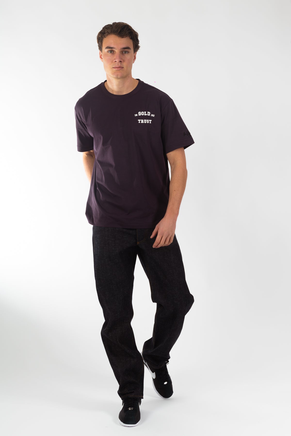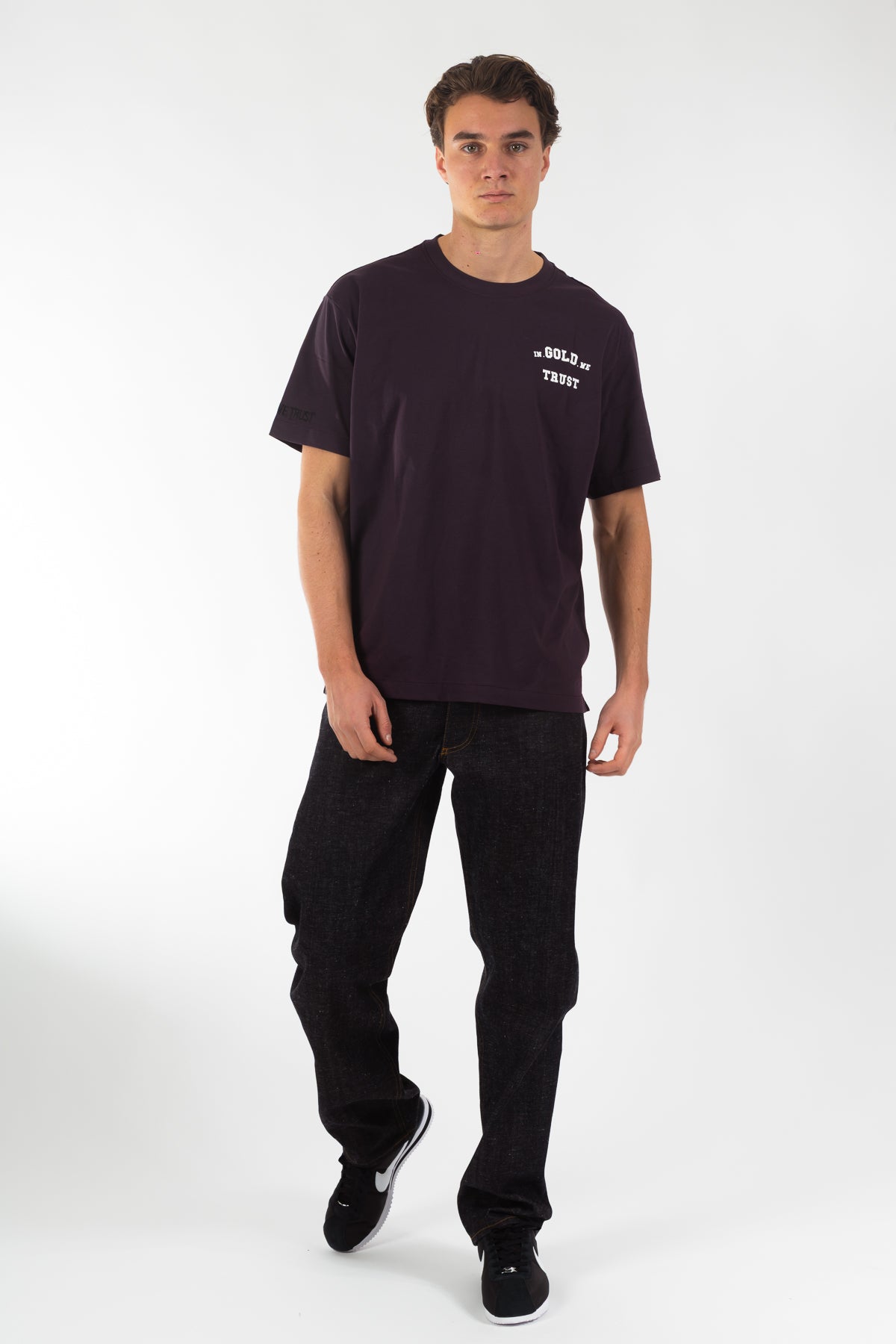 T-shirt uit de nieuwe collectie, gemaakt van 100% katoen in een comfortabele loose fit. Uitgevoerd in de kleur paars en voorzien van ons originele logo in hoogwaardige zeefdruk, met de herkenbare signature borduring op de mouwen. Tijdloos design, afgewerkt in de originele kwaliteit waar In Gold We Trust bekendstaat.