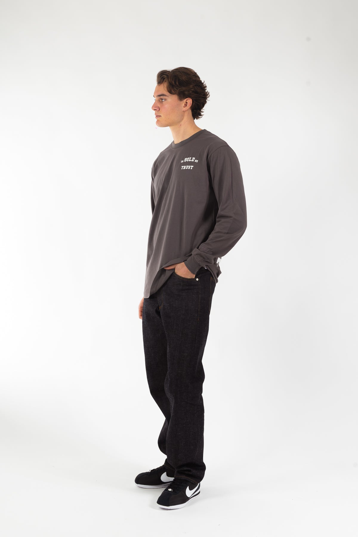 Long sleeve uit de nieuwe collectie, gemaakt van 100% katoen in een comfortabele loose fit. Voorzien van ons originele logo in hoogwaardige zeefdruk en de herkenbare signature borduring op de mouwen. Tijdloos design, uitgevoerd in de originele kwaliteit waar In Gold We Trust bekendstaat.