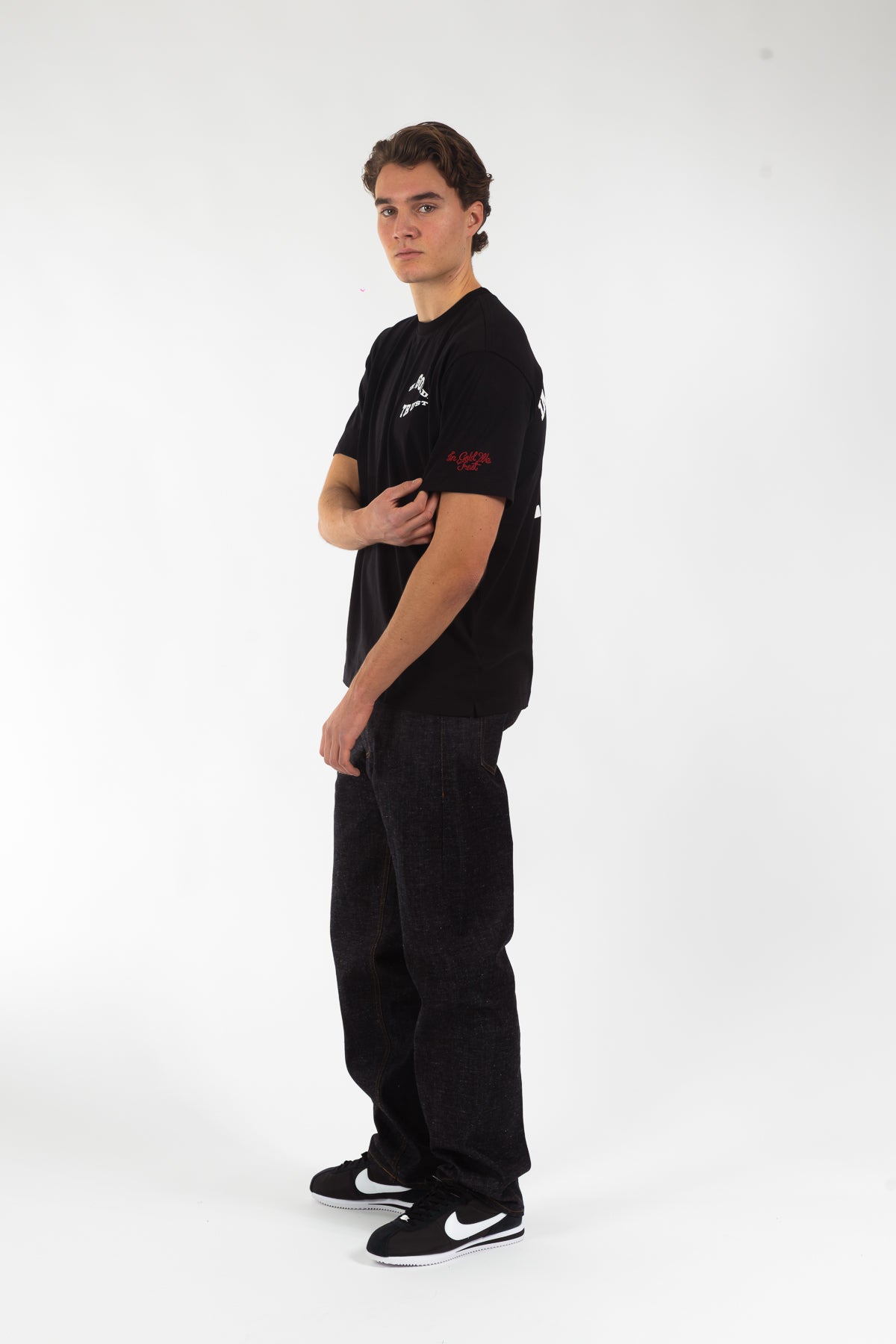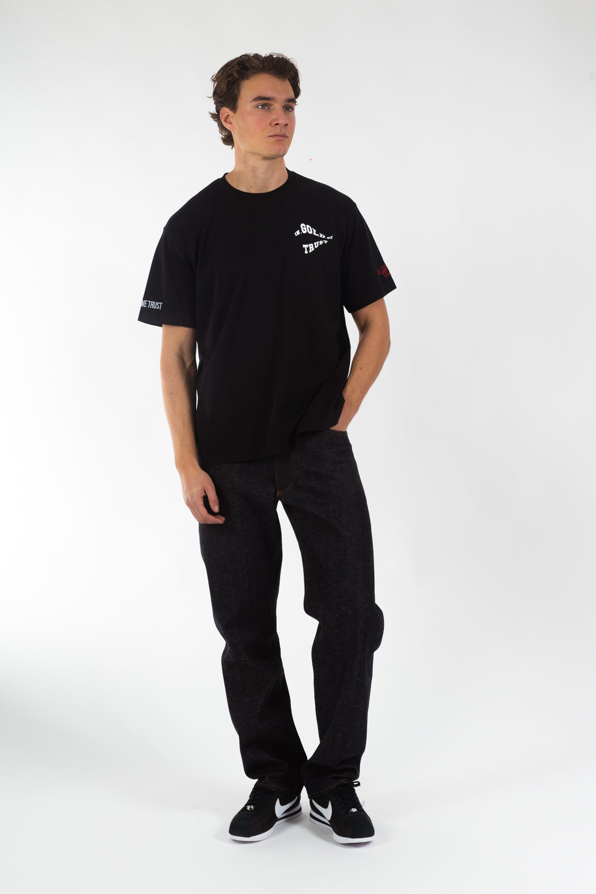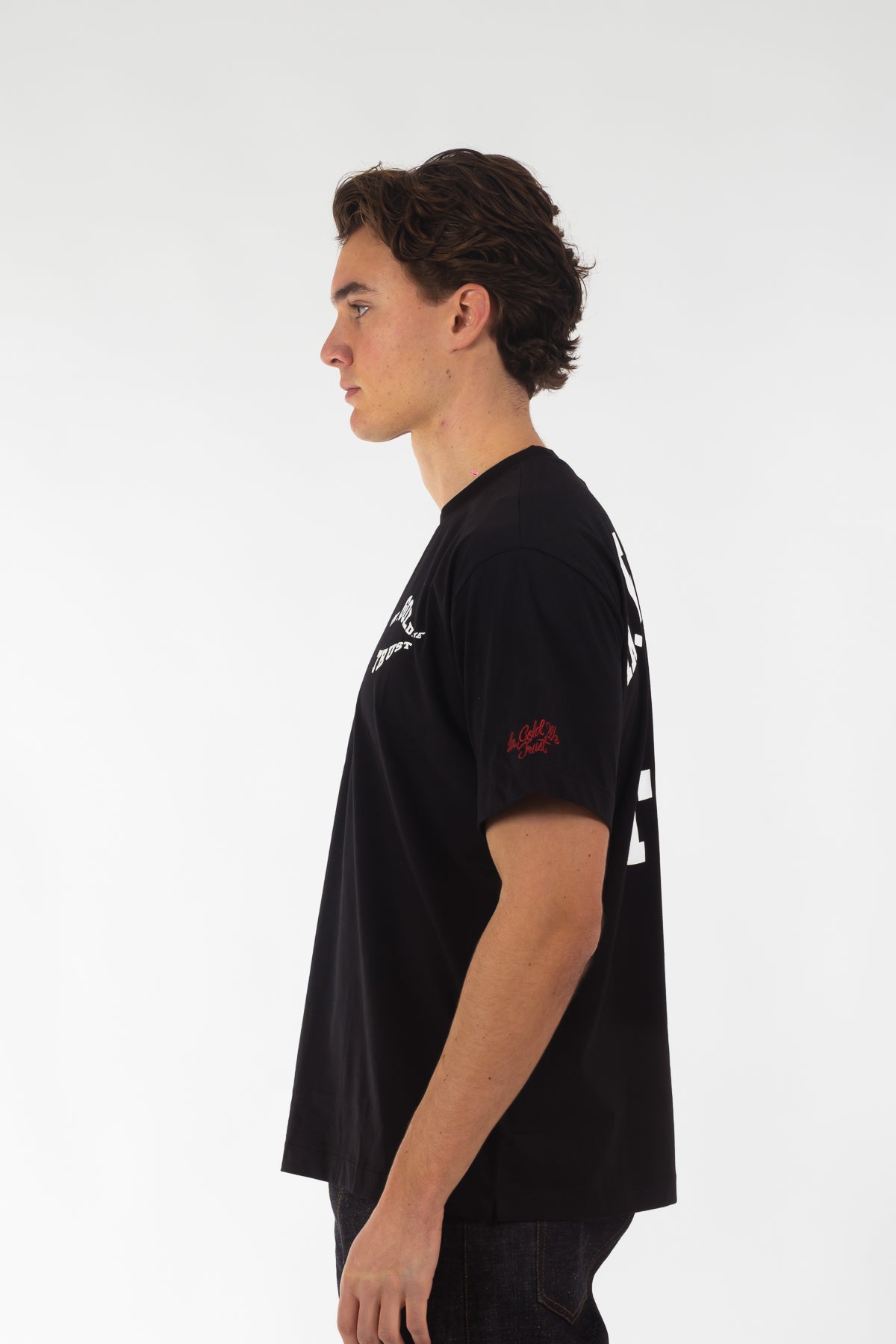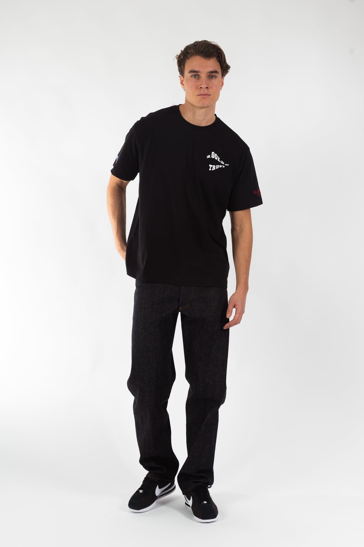 T-shirt uit de nieuwe collectie, gemaakt van 100% katoen in een comfortabele loose fit. Voorzien van een golvend logo in hoogwaardige zeefdruk en onze kenmerkende borduursels op de mouwen. Tijdloos ontwerp, uitgevoerd in de originele kwaliteit waar In Gold We Trust bekendstaat.